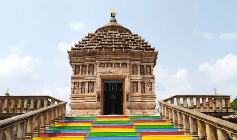 Bhusandeswar Temple is a masterpiece of Odishan temple architecture. The main shrine, constructed from sandstone, features a towering vimana (sanctum tower) adorned with intricate carvings depicting deities, celestial beings, and mythological scenes. Unlike conventional temples, the sanctum sanctorum (garbhagriha) is located underground, accessible via a narrow flight of steps.